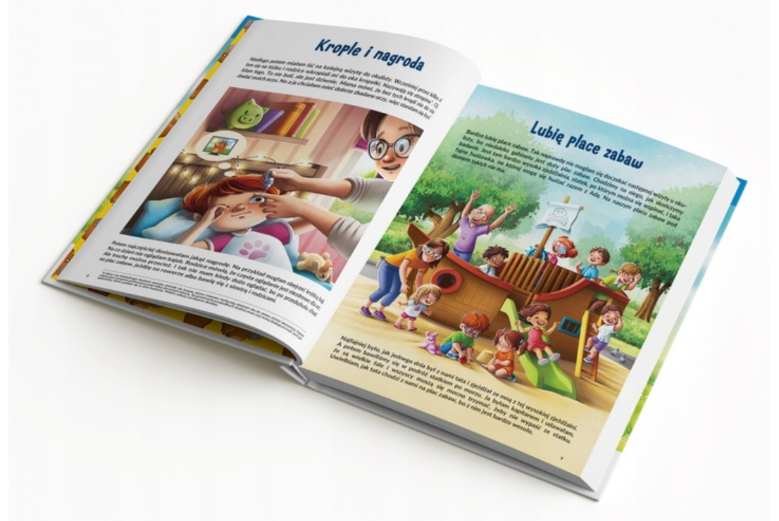 - w przystępny sposób wyjaśnia, dlaczego ważna jest wizyta u okulisty w wieku przedszkolnym, oraz pomaga ją oswoić,